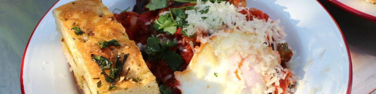 Verfrissend: Shakshuka met knoflook en Turks brood